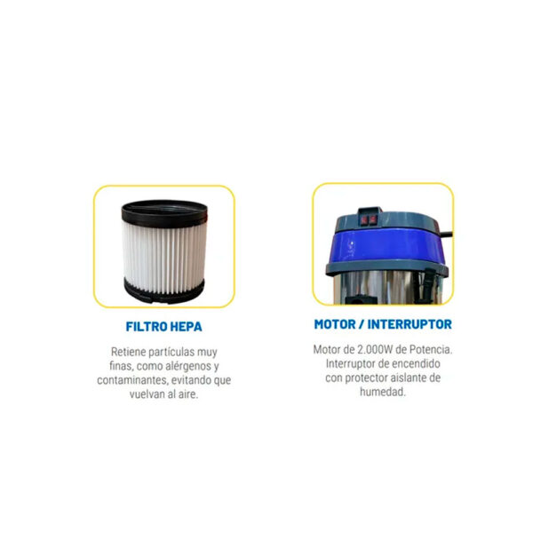 Aspiradora Industrial Polvo-agua 70 Lts Filtro Hepa Luster