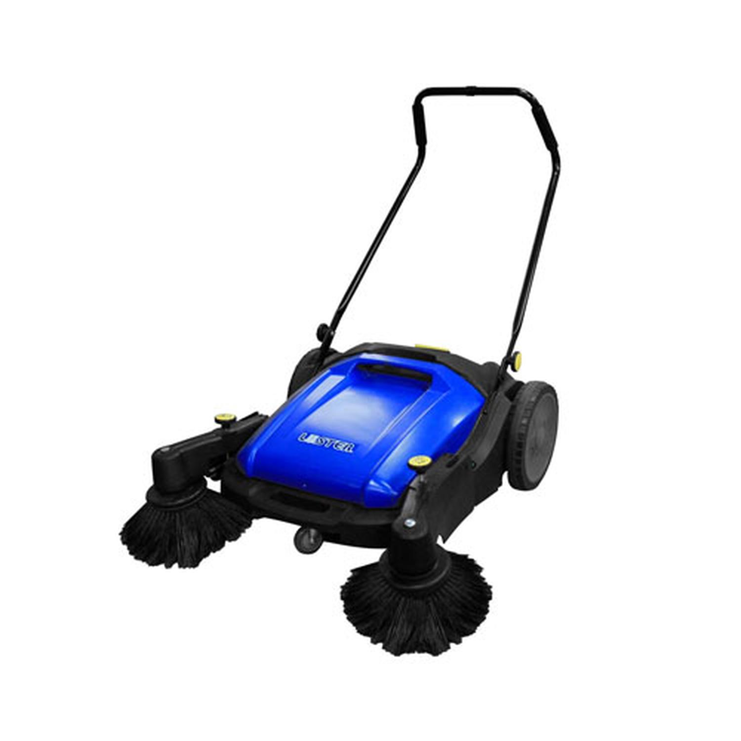 La barredora manual Luster, es una barredora que funciona sin motores. El empuje manual del operador hace que giren las ruedas que transmiten el movimiento a los cepillos. Es una máquina muy simple y práctica de usar que se presta a la limpieza de mantenimiento en zonas limitadas y en espacios reducidos. Con sus dos cepillos laterales realiza un barrido dificil de igualar.