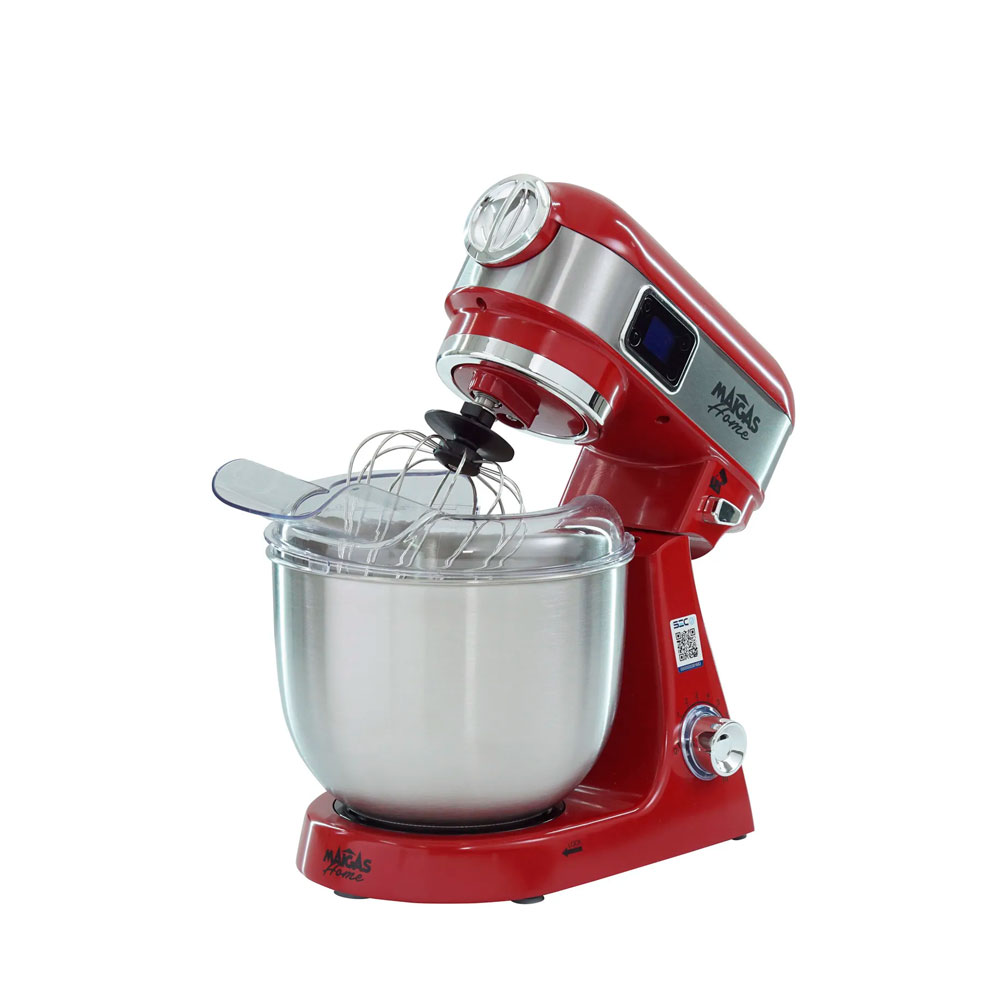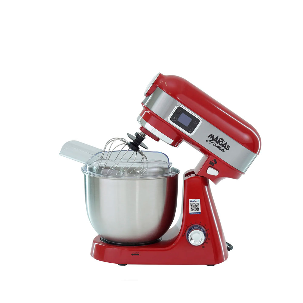Nuestra nueva línea de batidoras Maigas Home, un producto de la más alta calidad que ayudará a complementar la cocina de nuestro hogar. La batidora Lorenzza, cuenta con un motor de larga duración con potencia de 1000W, 10 velocidades, Panel de control digital, función pulso y bowl con capacidad de 5 litros para que puedas hacer increíbles mezclas y masas para tus recetas favoritas.1. Panel de control digital que permite de manera fácil y amigable seleccionar y mantener el control en todo momento de tus preparaciones asegurando la velocidad y el tiempo preciso para el mejor resultado de tus elavoraciones.2. Botón de liberación3. Perilla de control de velocidad4. Brazo giratorio5. Caja de motor6. Almohadilla de soporte
