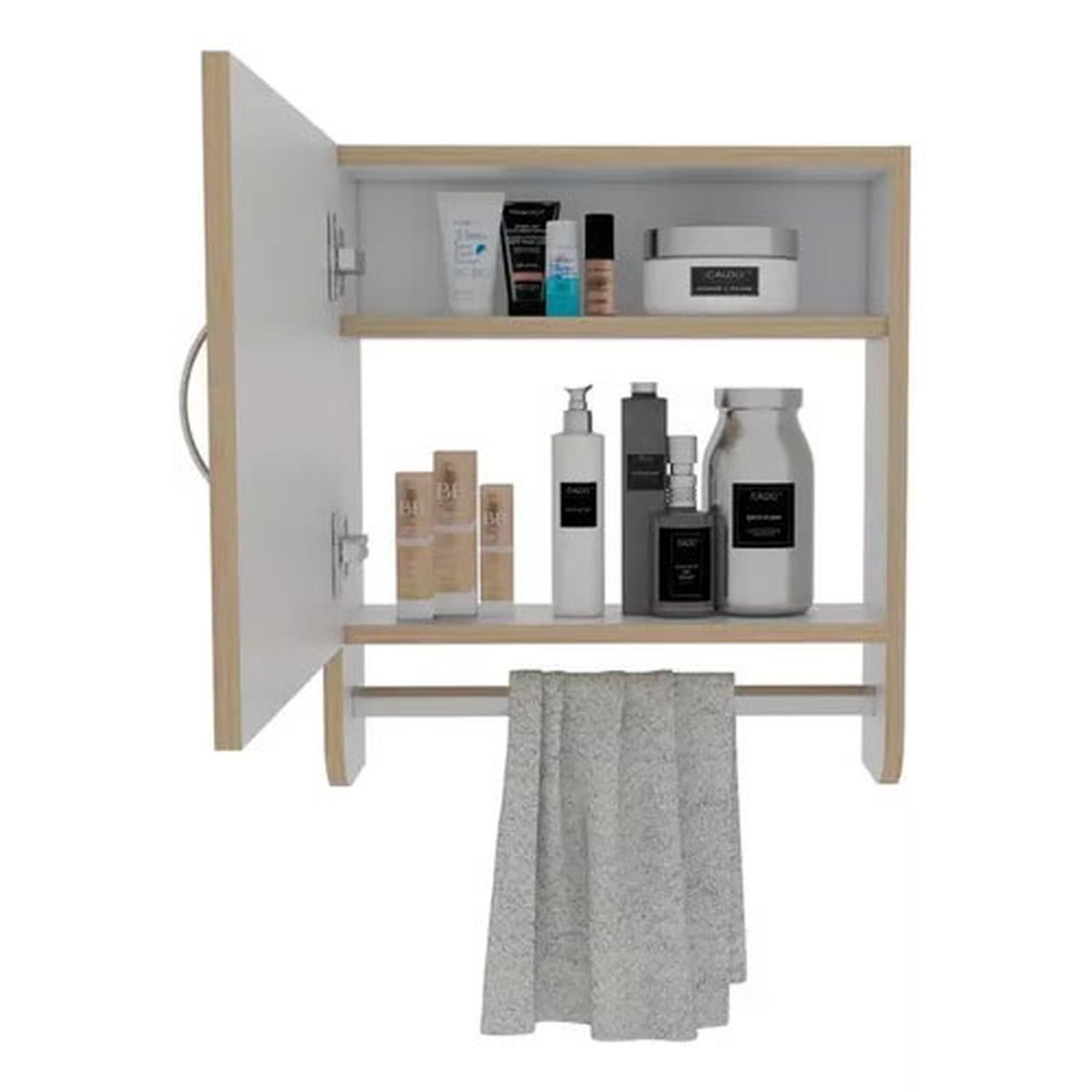 Botiquin Bath, Rovere y Blanco, con puerta espejo y dos entrepaños para colocar objetos de aseo