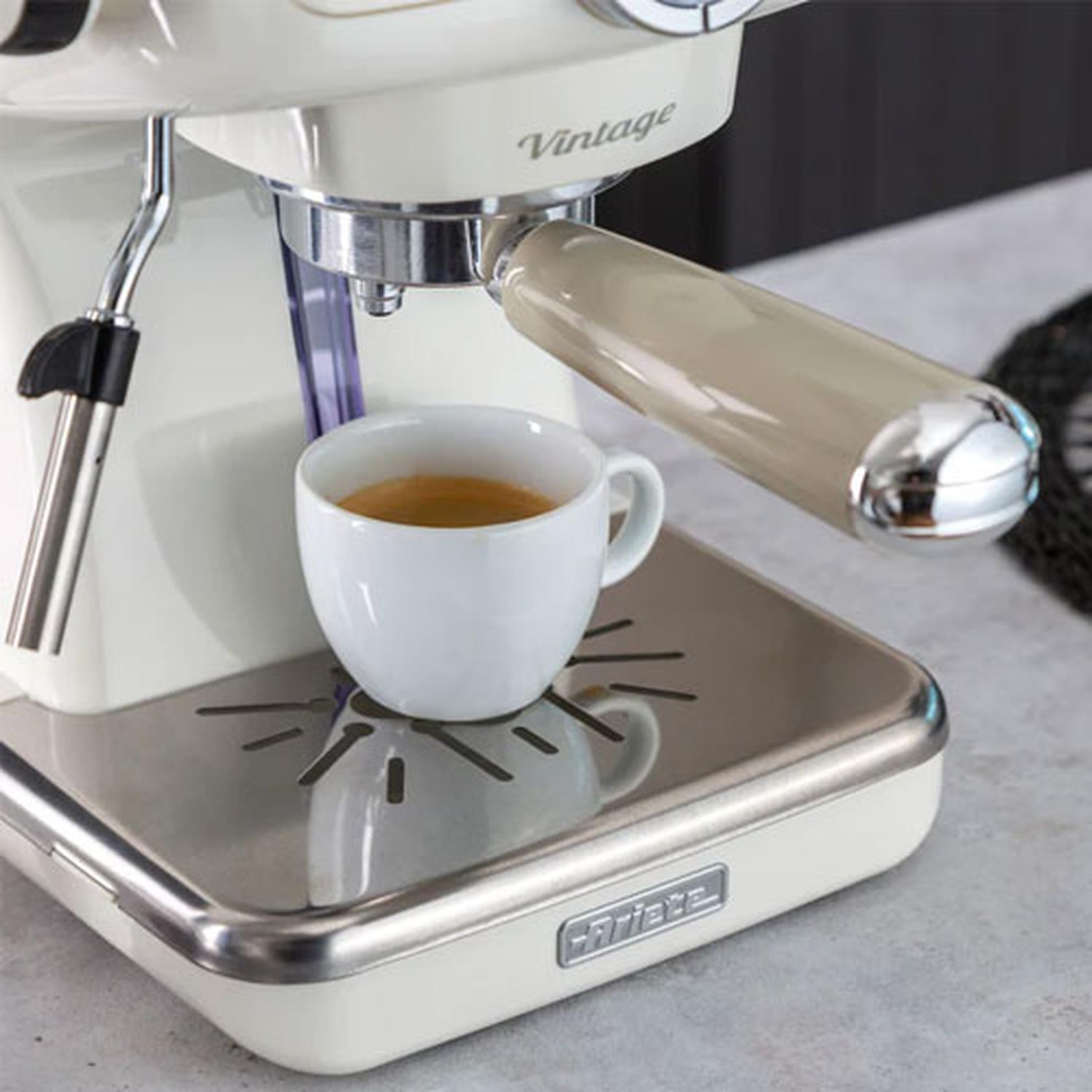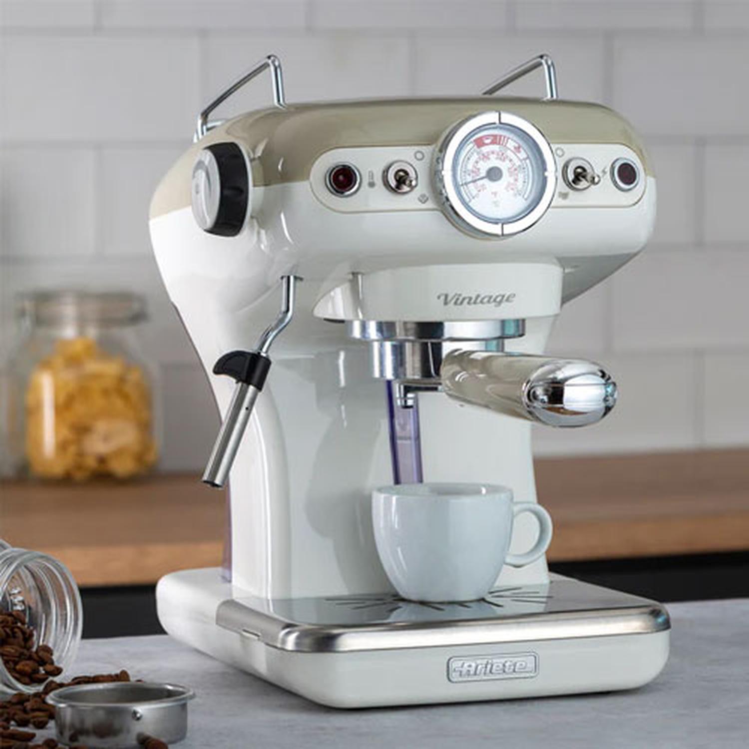 Vive un momento perfecto con la Cafetera Espresso Vintage de Ariete. Ideal para comenzar las mañanas como corresponde, cuenta con capacidad para 0.9 litros, 15 bares de presión y deposito maxi-cappucciono para que prepares una espuma perfecta para combinar con espresso italiano. Su look retro sin dudas le dará un gran look a tu cocina. Puedes elegir entre sus colores beige y verde.