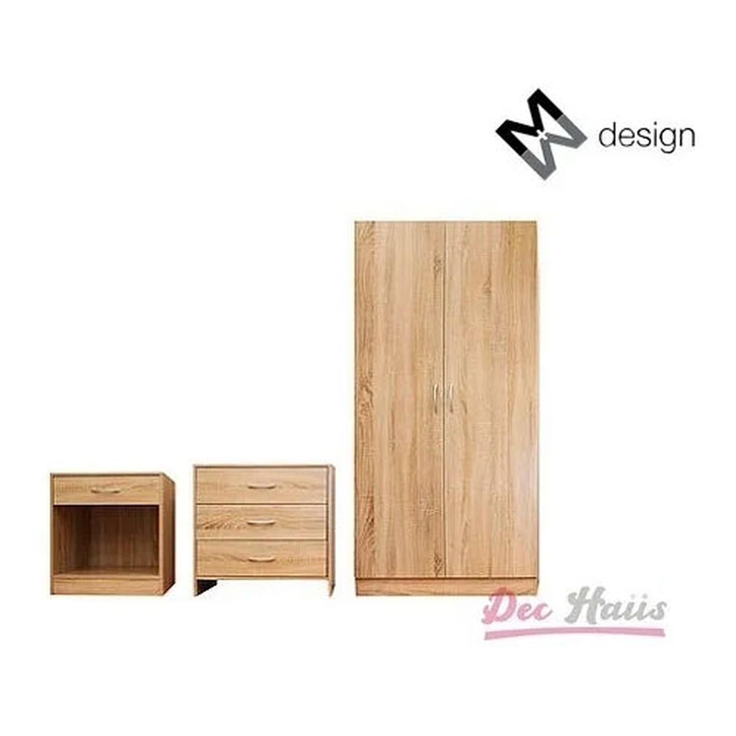 Clóset 2 Puertas +cómoda 3 Cajones +velador 1 Cajón M+design