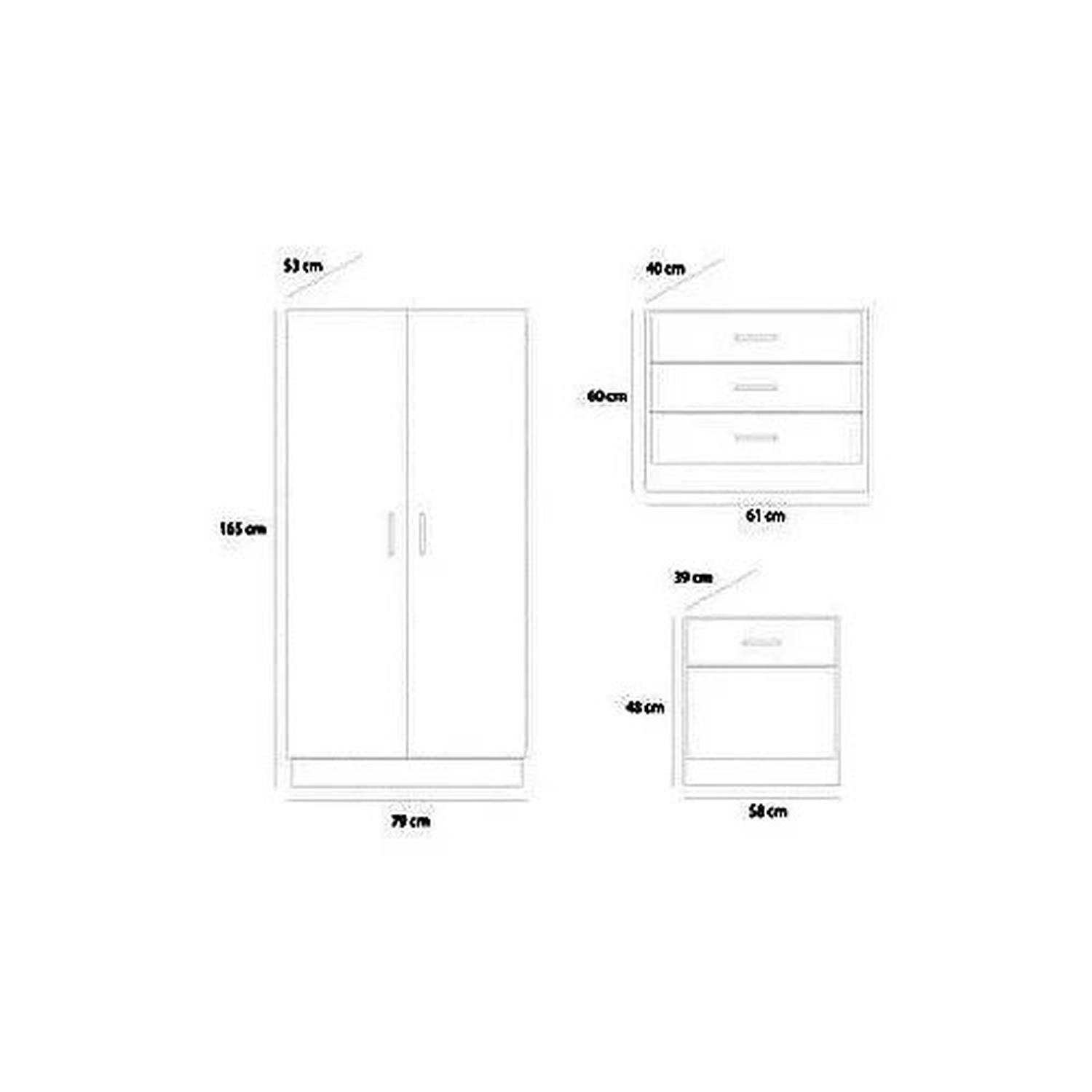 Medidas Clóset: 165x78x53 cm. Cómoda: 60x61x40 cm. Velador: 48x58x39 cm. (altoxanchoxprof)