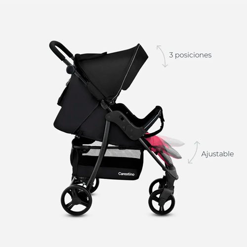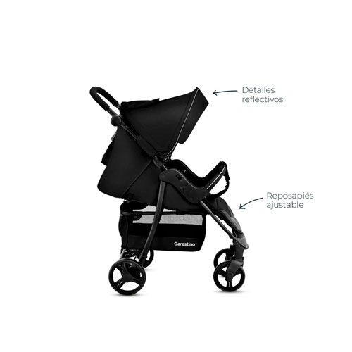 El coche también está equipado con un apoyapiés de altura ajustable y un respaldo con múltiples posiciones, incluyendo el reclinado total, lo que lo hace perfectamente adecuado para recién nacidos. Esta característica permite que tu bebé descanse cómodamente desde el primer día, asegurando una postura segura y confortable.