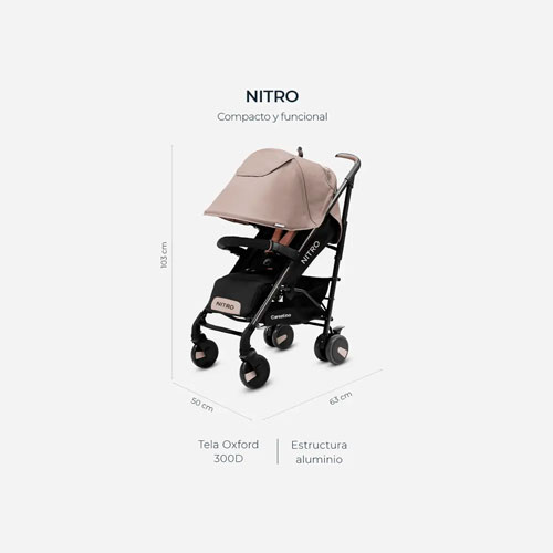 Además, el coche NITRO incluye un práctico portavaso y/o mamadera para tener bebidas al alcance de la mano.