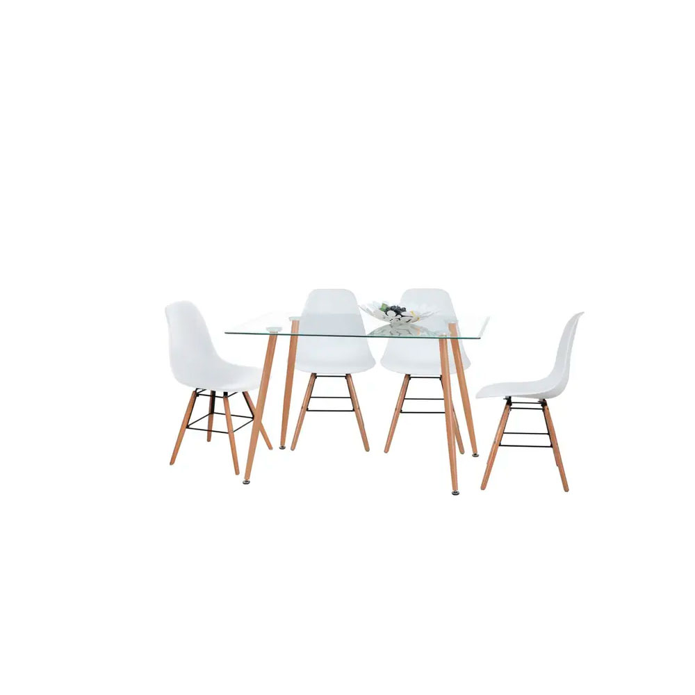 El Juego de comedor Dini 2.0 de M+Design es la opción perfecta para quienes buscan un conjunto compacto y funcional. Compuesto por una mesa rectangular de vidrio y cuatro sillas, este comedor es ideal para espacios pequeños. Su diseño en tono blanco aporta luminosidad y modernidad a cualquier ambiente, mientras que los materiales de alta calidad garantizan durabilidad y resistencia.