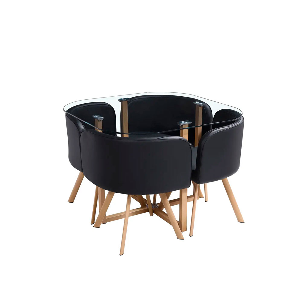 Comedor 4 sillas Pizza negro 100x100x73 cms
