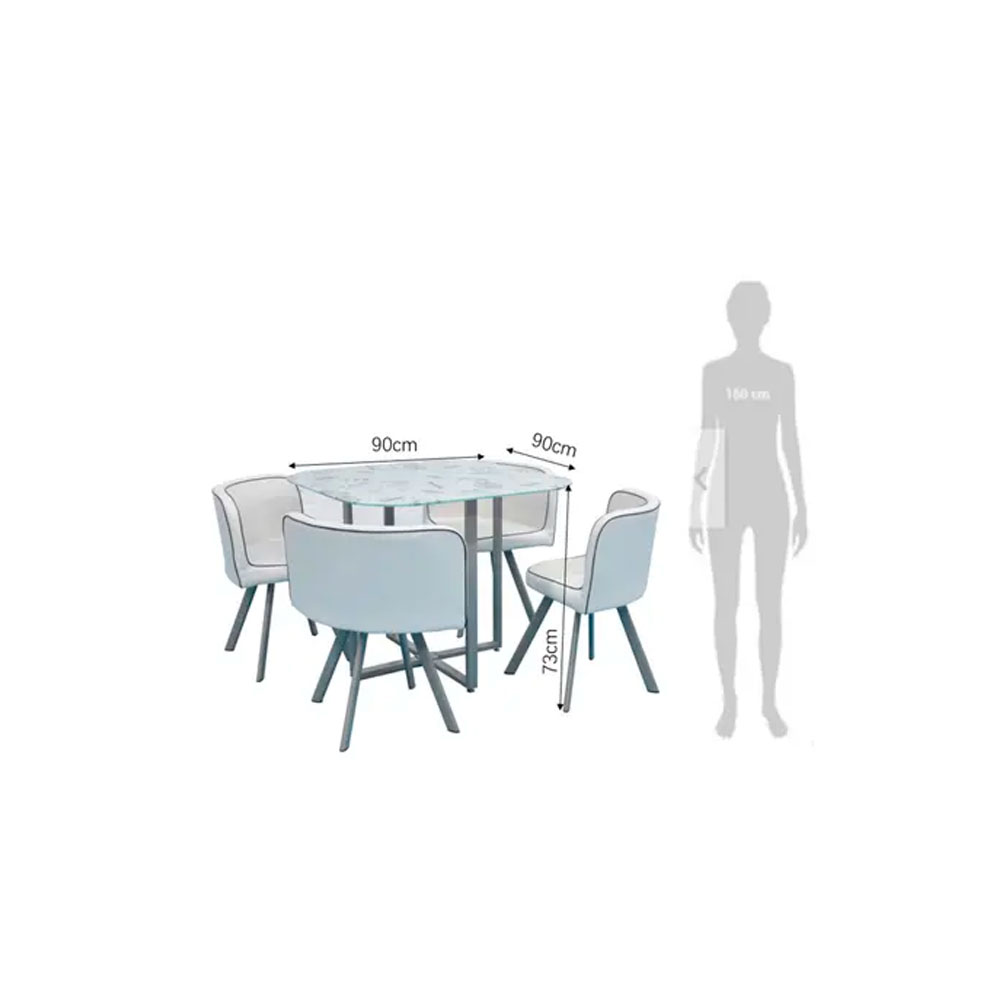 Dimensiones cm Mesa: 73x90x90 cm / silla: 63x43x70.5 cm