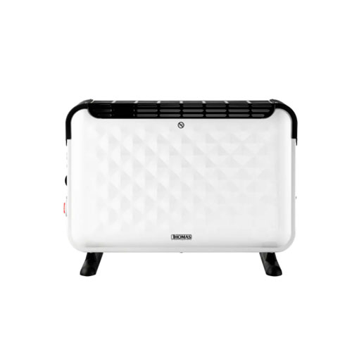 Este modelo posee una potencia variable de 750/1250/2000 watts y 3 niveles de temperatura. Cuenta con sistema de seguridad contra sobrecalentamiento, termostato para ahorrar energía, timer de encendido y apagado automático de 24 horas, turbo ventilador y manillas para un fácil traslado.