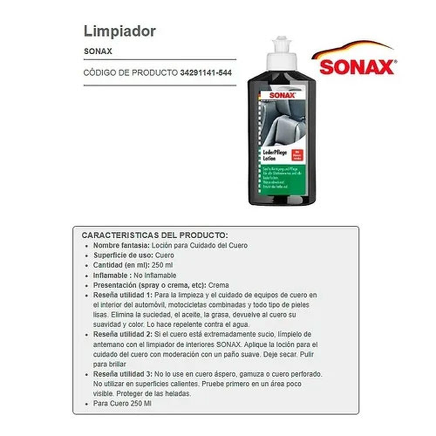 Loción de alta calidad para la limpieza delicada y el cuidado de interiores de coches, trajes de moto y otros tipos de cuero y piel lisa. Refresca los colores y la consistencia del cuero. Elimina sin esfuerzo suciedad, aceite y grasa. Deja el cuero especialmente flexible y lo proviene de la quebradiza. Ceras de abeja y de siliconas confiere al cuero una protección excelente de larga duración y un efecto repelente al agua.