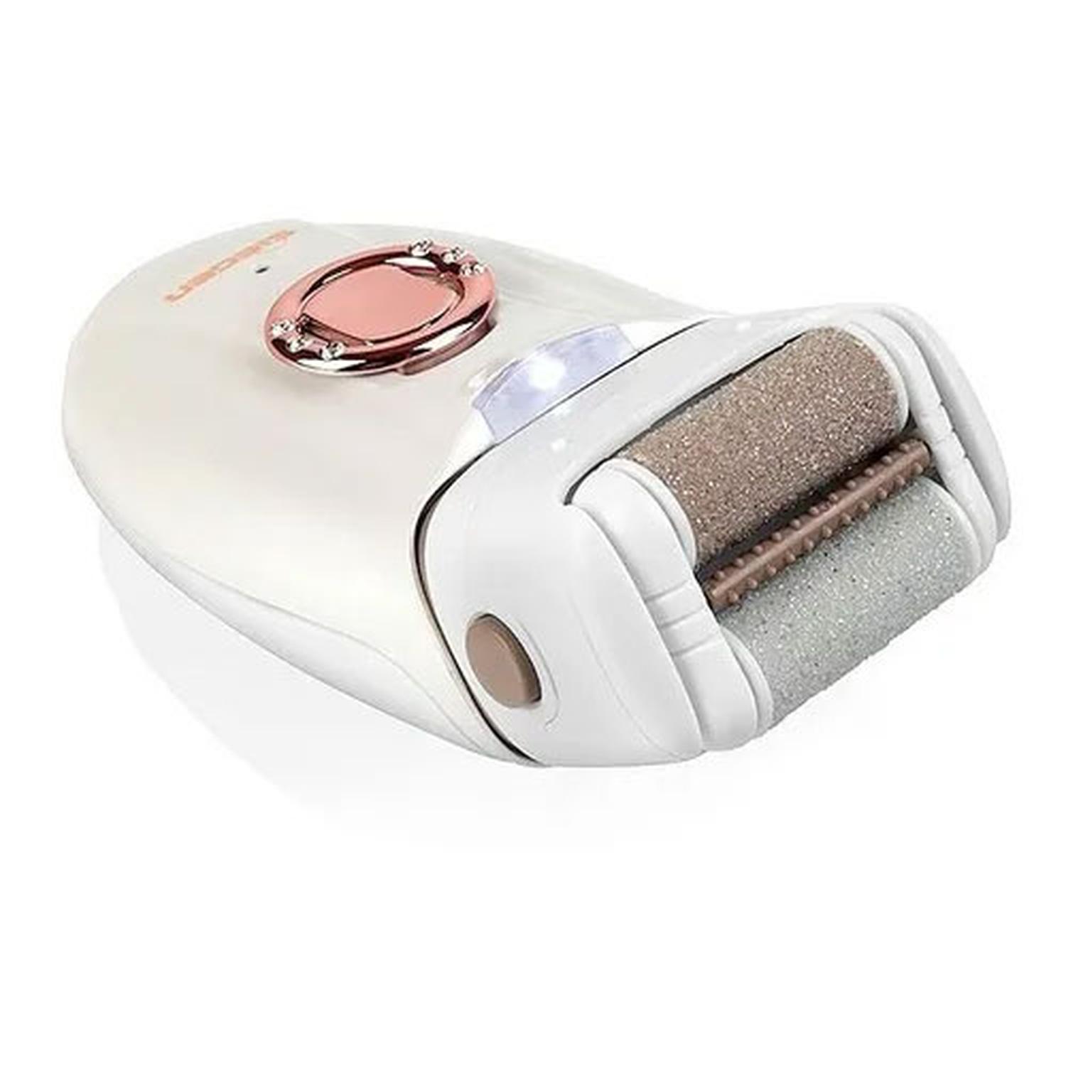 Cabezal con doble rodillo exfoliador, creado para suavizar la piel seca, áspera y callosa de tus pies, eliminando esas molestas durezas y células muertas, este accesorio fácil de usar, es más eficiente, cómodo y seguro que los raspadores de metal, ya que los otros métodos requieren frotamiento constante para lograr esos pies suaves que tanto anhelas.