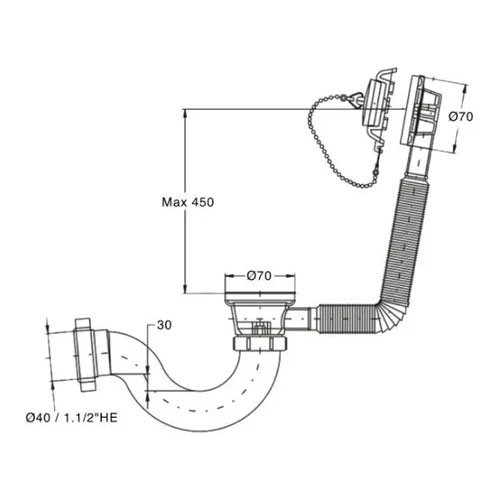 DESAGÜE TINA TAPON GOMA CON CADENILLA, SALIDA 40MM O 1.1/2 PULGADAS HE