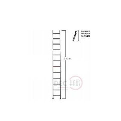 Escalera recta de aluminio con peldaño en “D” de 12 pies de altura y capacidad de carga 175 Kg. Tipo II.