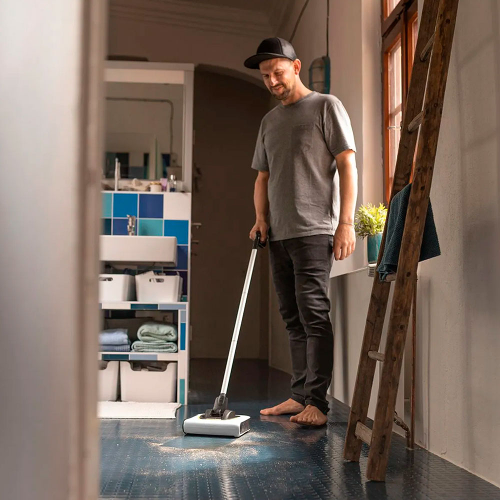 La escoba eléctrica a batería KB5 es el equipo de limpieza intermedia ideal para suelos duros y alfombras. La KB5 accionada con batería de iones de litio presenta un diseño compacto y cuenta con una potencia de limpieza extraordinaria. Con su articulación doble flexible, accede sin esfuerzo al espacio entre las sillas y debajo de los muebles, limpia escaleras sin problemas y barre eficazmente hasta el borde.