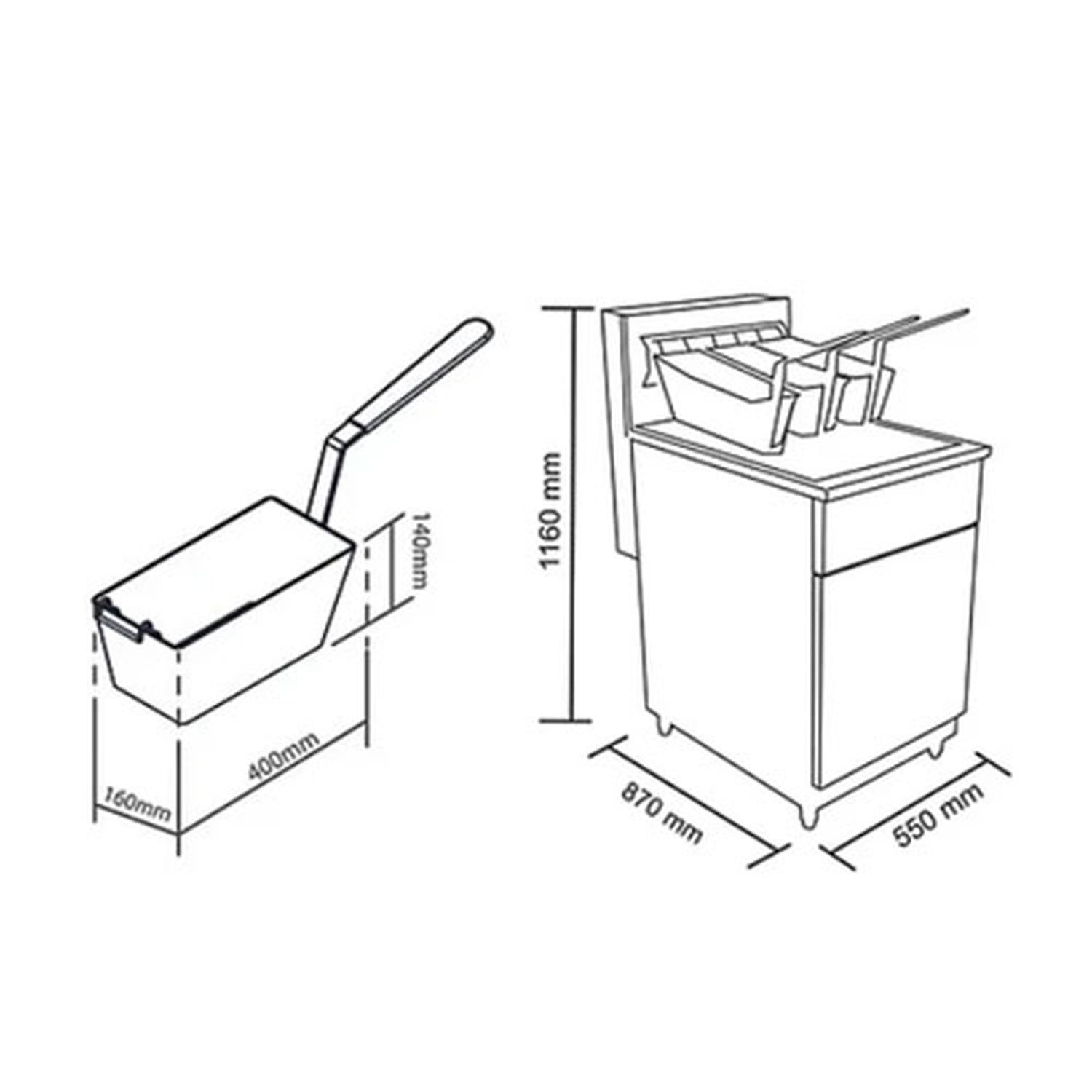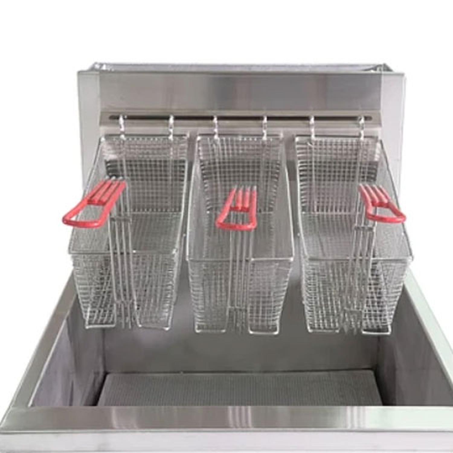 Construida íntegramente en acero inoxidable, que funciona solo con aceite y contiene 3 canastillos de