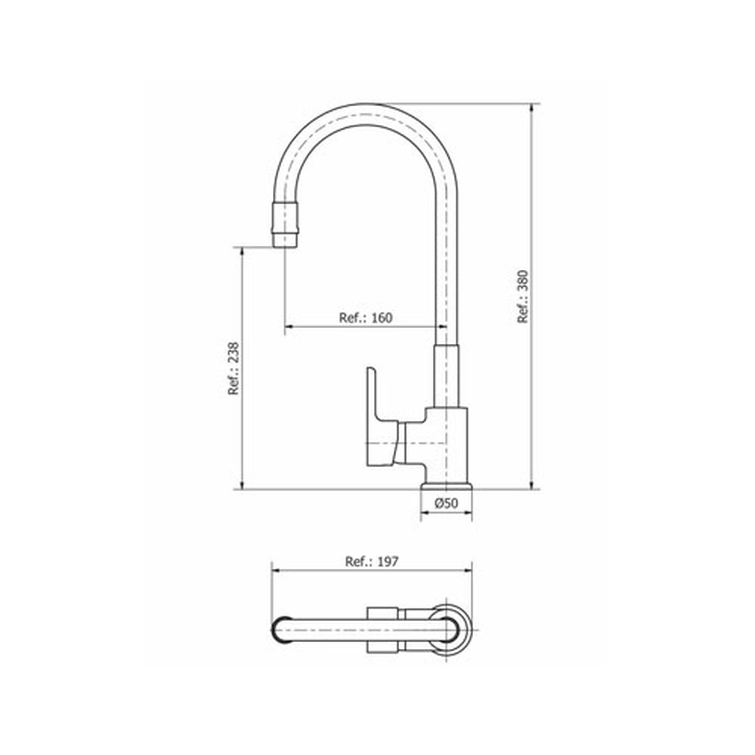 Incluye conjunto de fijaciones y flexibles G1/2″ X 14h de acero mallado