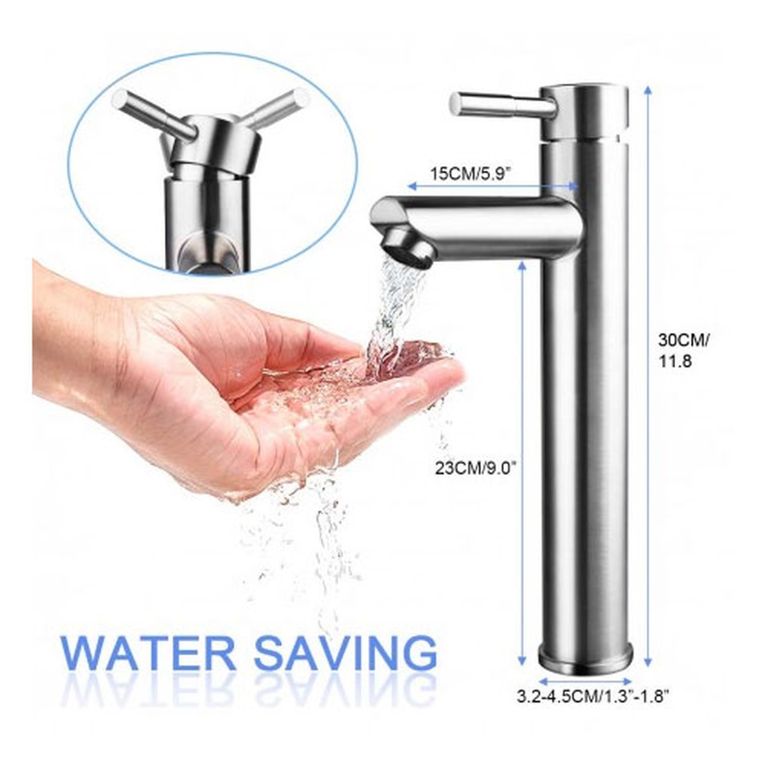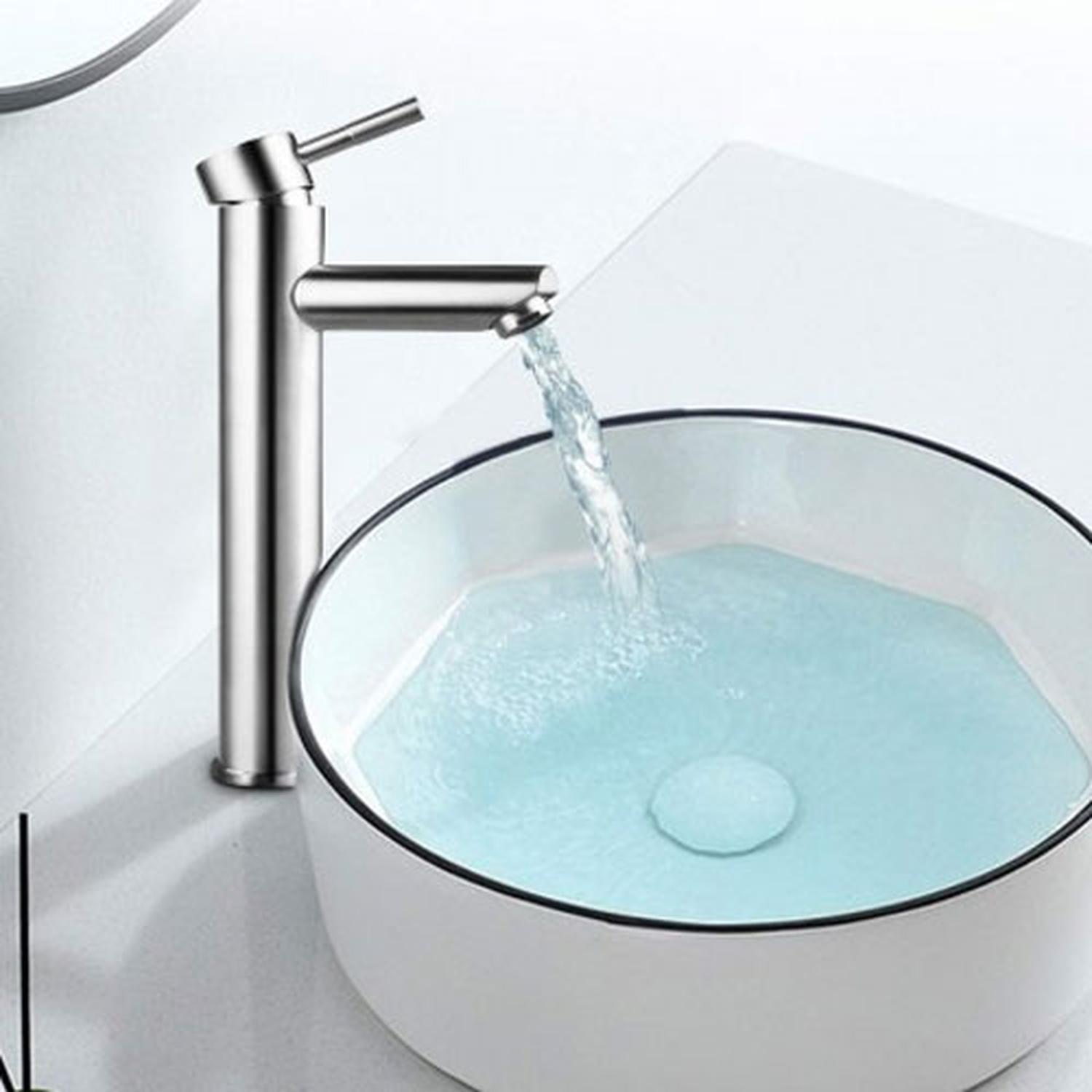 Grifería Monomando Alto Vanitorio Acero Inoxidable