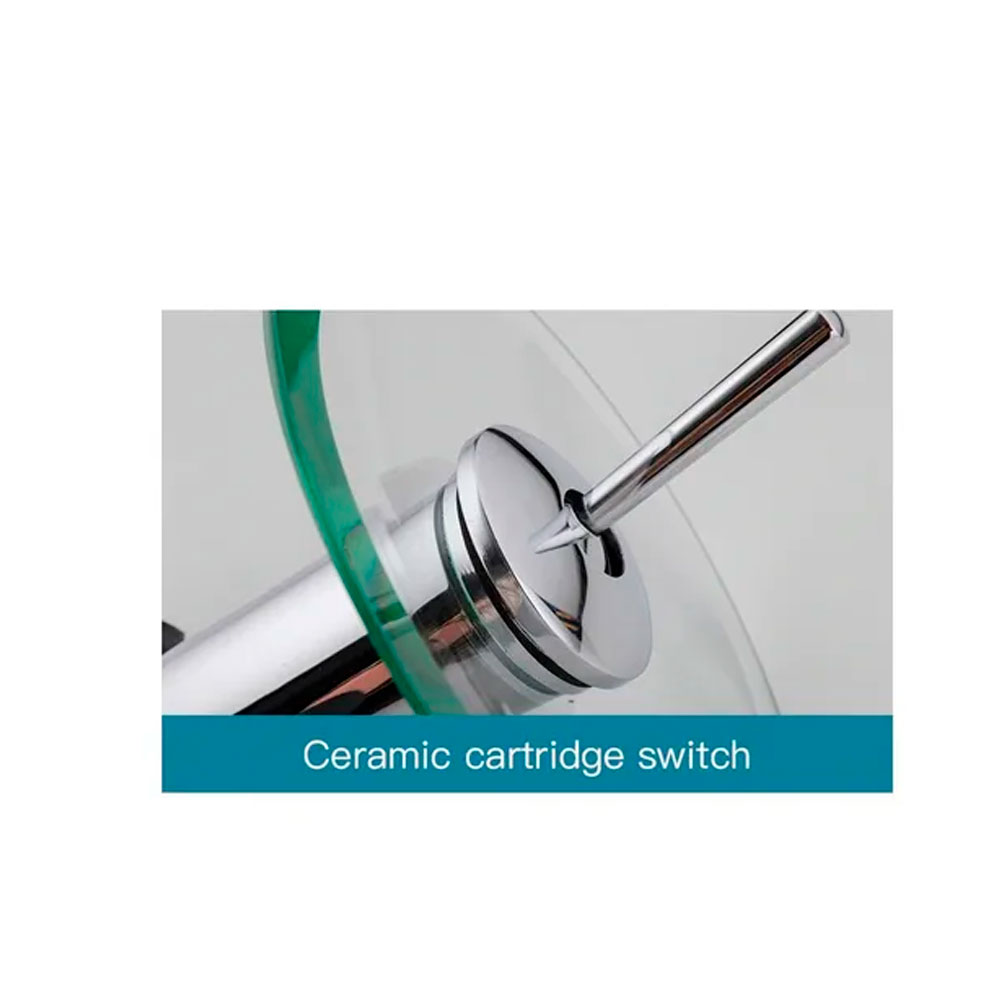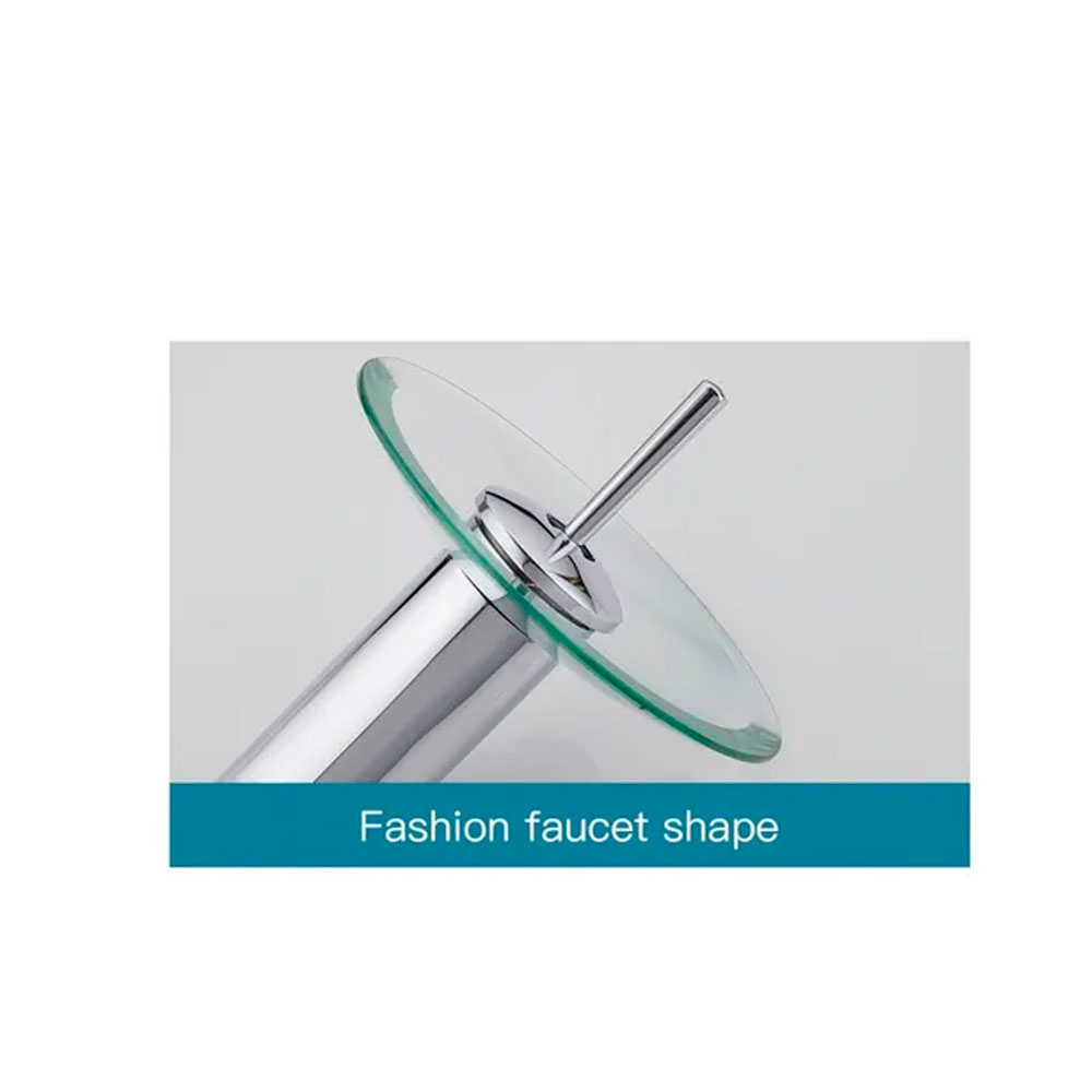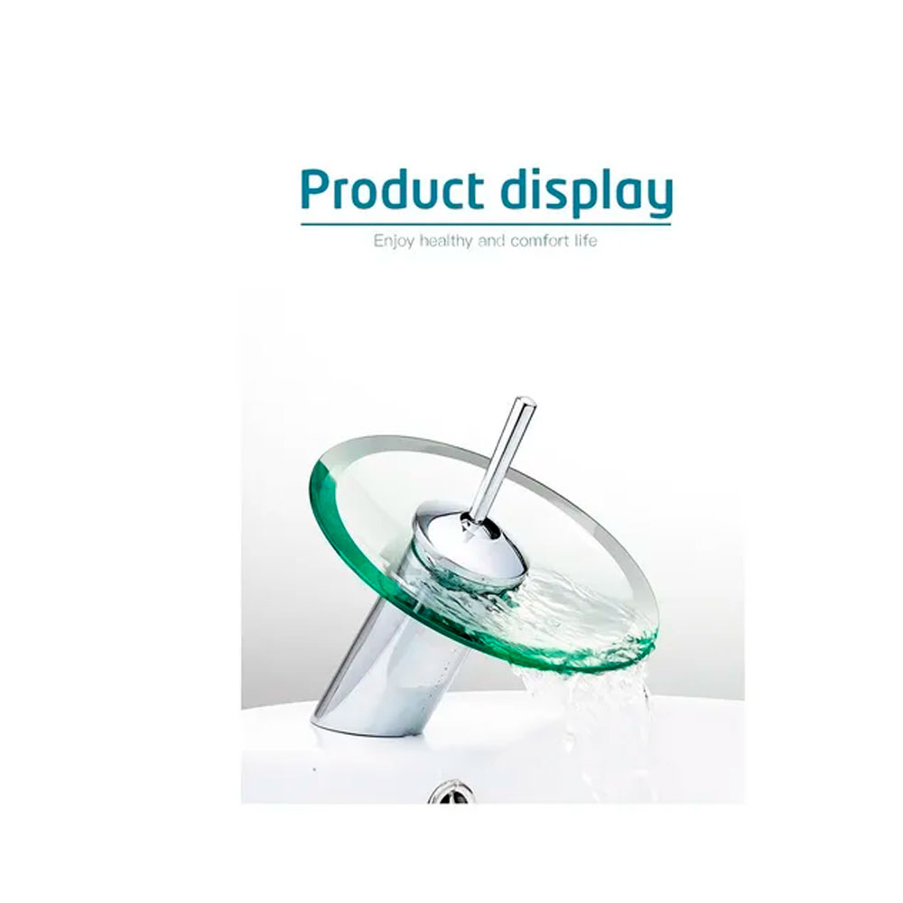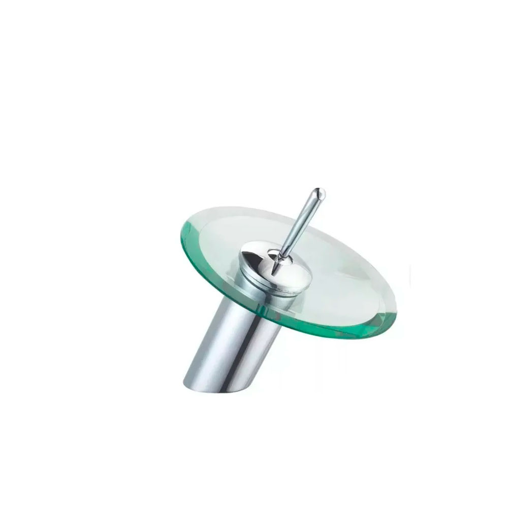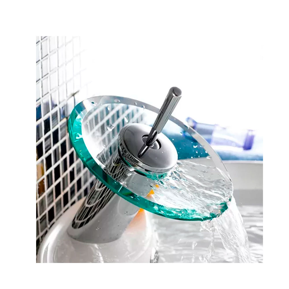 Llave Monomando Lavamanos Tipo Cascada Vidrio Circular, Flexibles, Tornillos y tuercas de ajuste