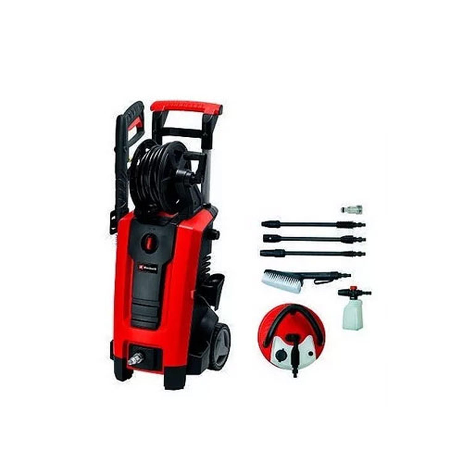 La limpiadora a alta presión de Einhell TC-HP 170 trabaja con 2300 vatios y una presión admisible máxima de 170 bar. Gracias al modo constructivo compacto y el asa extensible integrada, la limpiadora a alta presión es cómoda de transportar y ahorra espacio en el almacenamiento. La limpiadora a alta presión se enciende y apaga automáticamente y es apropiada e ideal para uso móvil gracias a sus ruedas, para la limpieza de superficies sucias con caudal máximo. La conexión de agua está equipada con un filtro integrado. La limpiadora a alta presión es flexible en el uso gracias al sistema de acoplamiento rápido modular. La presión y la intensidad del chorro de agua se regula a través de las boquillas. El tubo flexible de presión se puede guardar cómodamente en el rodillo de enrollado, además, se ofrecen múltiples posibilidades de almacenamiento para boquillas, pistola y otros accesorios. El envío incluye pistola, tubo flexible de presión, lanza, boquilla puntual y de chorro ancho, boquilla rotativa, cepillo, así como recipiente de agente pulverizador y limpiador de terraza con depósito.
