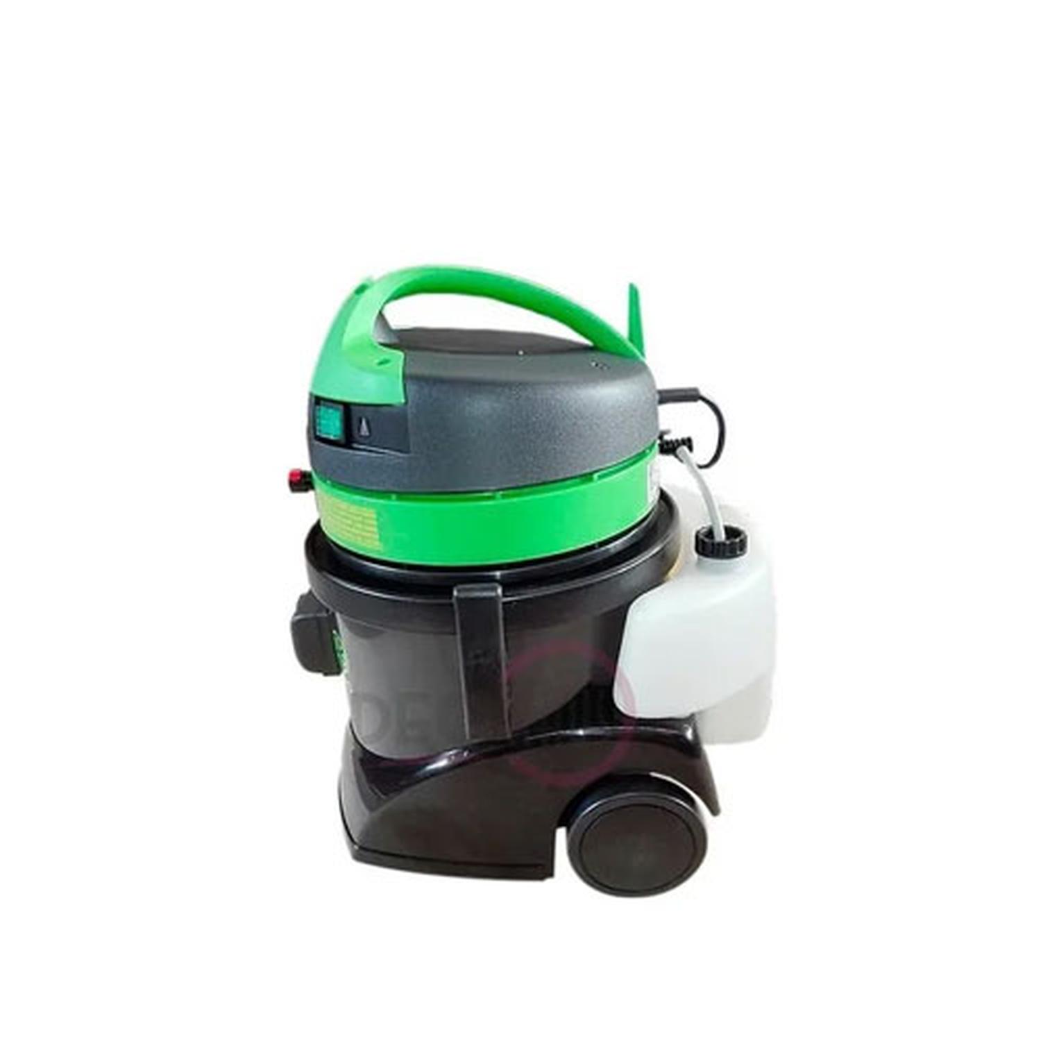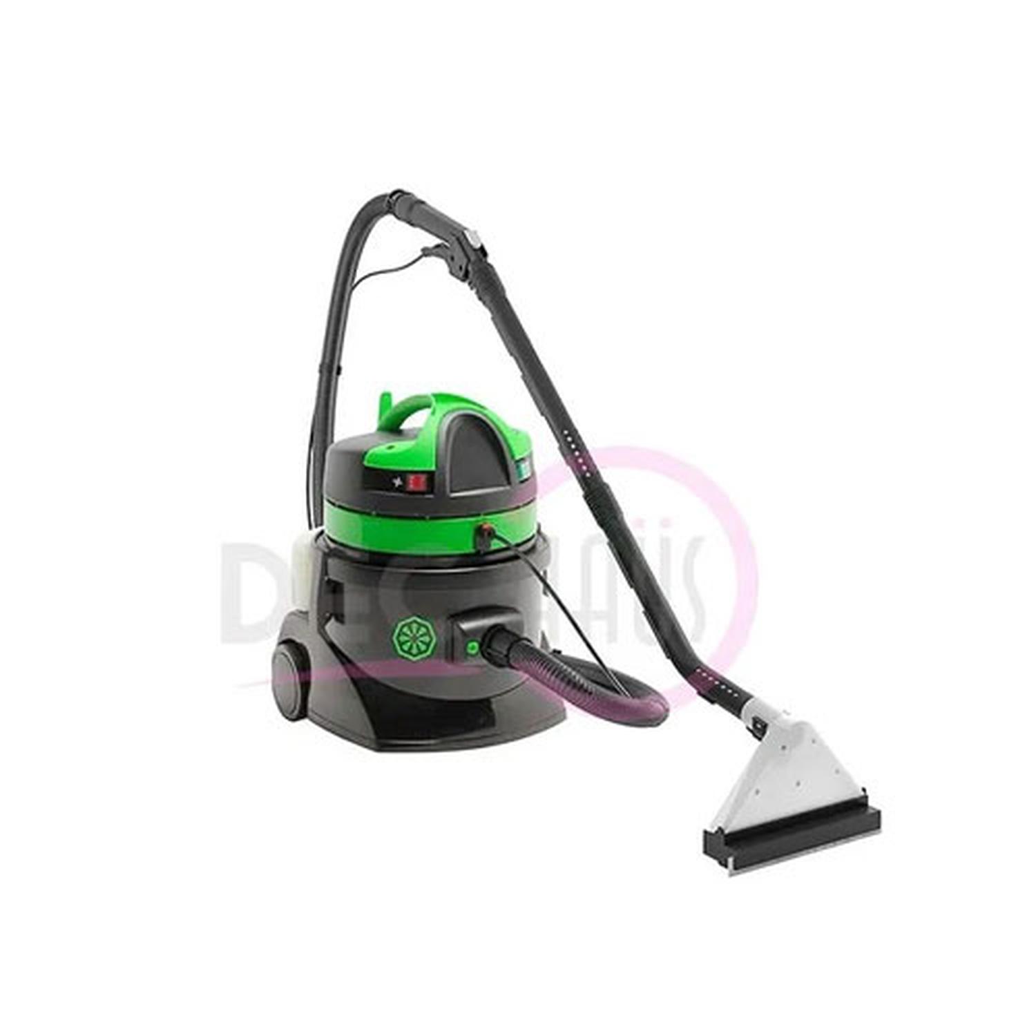 Equipo que consiste en lavar mediante el sistema de inyección y extracción todo tipo de superficie, especialmente alfombras, cubre pisos, tapices de automóviles, sofas, cortinas, pisos de goma, paredes, etc. La gran variedad de accesorios puede satisfacer cualquier exigencia. La máquina puede también ser empleado simplemente como aspirador de polvo y líquido adicionando sus accesorios opcionales. Una máquina ideal para el uso de limpieza esporádica.