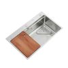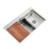 Accesorios Incluidos: Tabla para cortar de Madera (Roble), Canasto, Cesta con drenaje de acero inoxidable, Desagüe y Sifón.