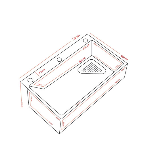 Medidas: Largo 75cm X Ancho 46cm X Alto 20cm.