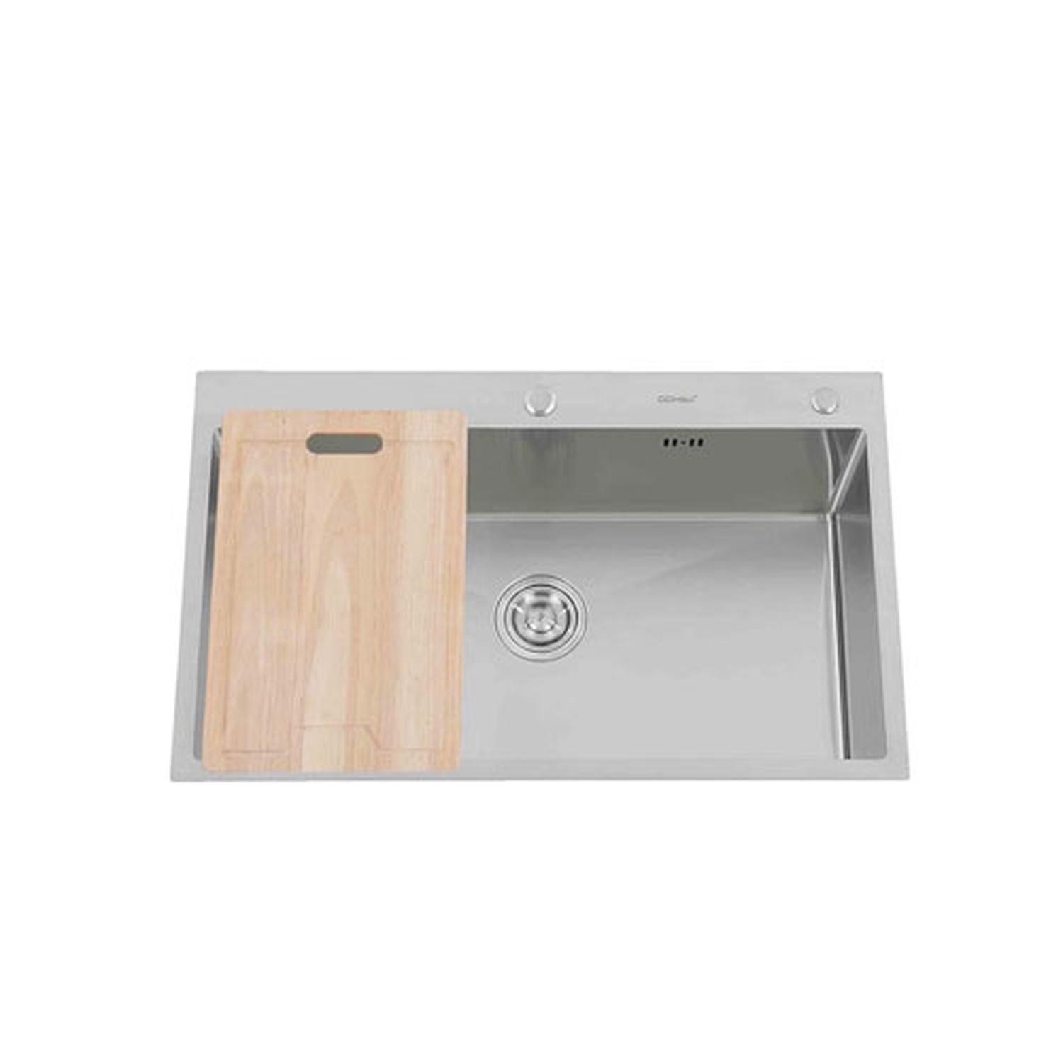 Accesorios Incluidos:  Tabla para cortar de Madera (Roble), Desagüe y Sifón.