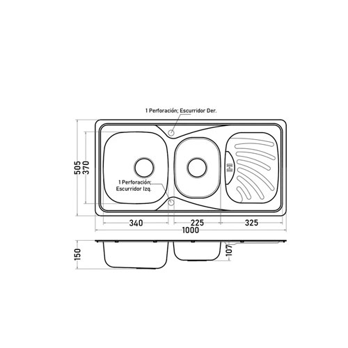 Lavaplatos empotar 50.5×100 cm LAV-E18002000000 Tebisa