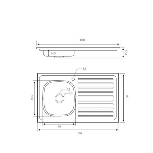 Lavaplatos empotrado de 100 cm para monomando, izquierdo