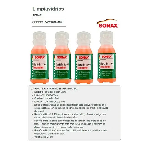 Limpiavidrios Concentrado 25ml Pack 4unid.vision Clara Sonax|