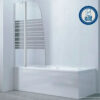 MAMPARA BATIENTE 90X150 CMS VIDRIO 5MM CON FRANJAS