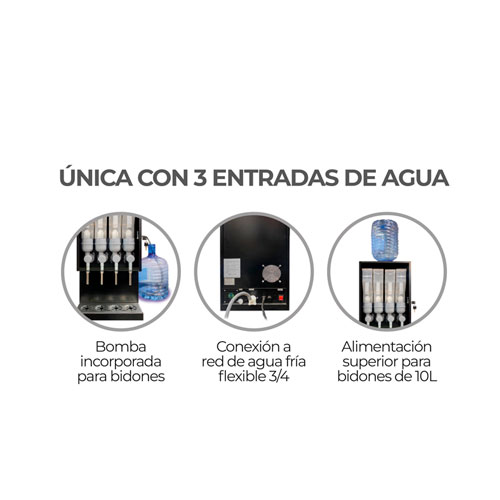 - Única con 3 entradas de agua: