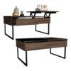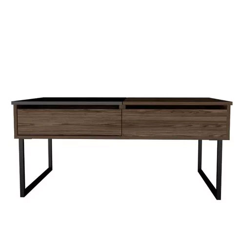 Mesa Funcional 5G,4, Coñac y Wengue, cajón interior y patas metálicas