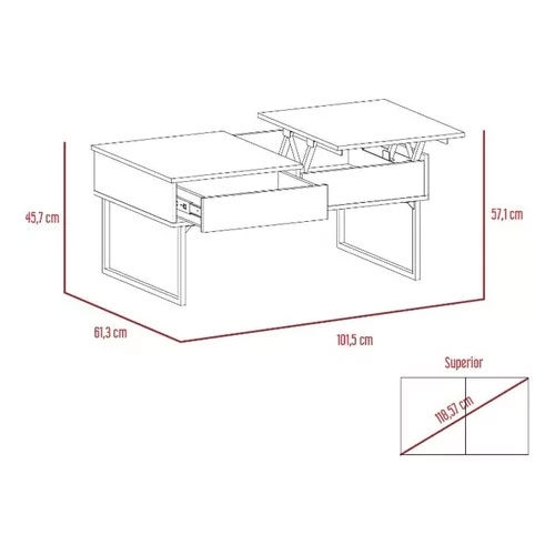 Mesa Funcional, con cajón interior, cajón deslizable y con patas metálicas.