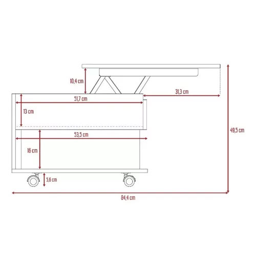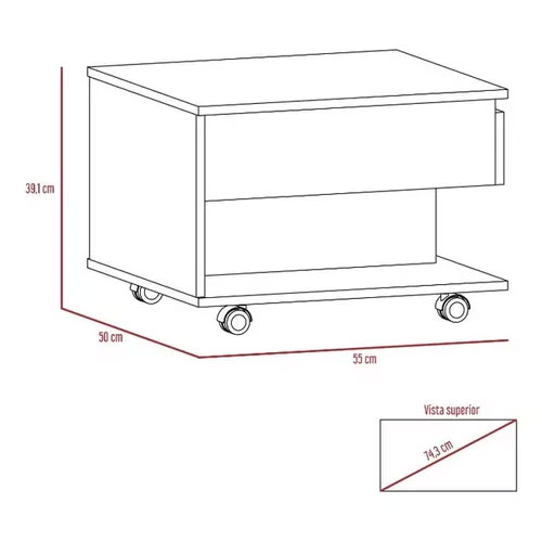 Mesa Funcional, con amplio cajón interior, entrepaño y rodachines.