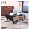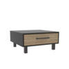 Mesa de Centro Kaia, Wengue y Miel, con un cajón amplio y patas en acero