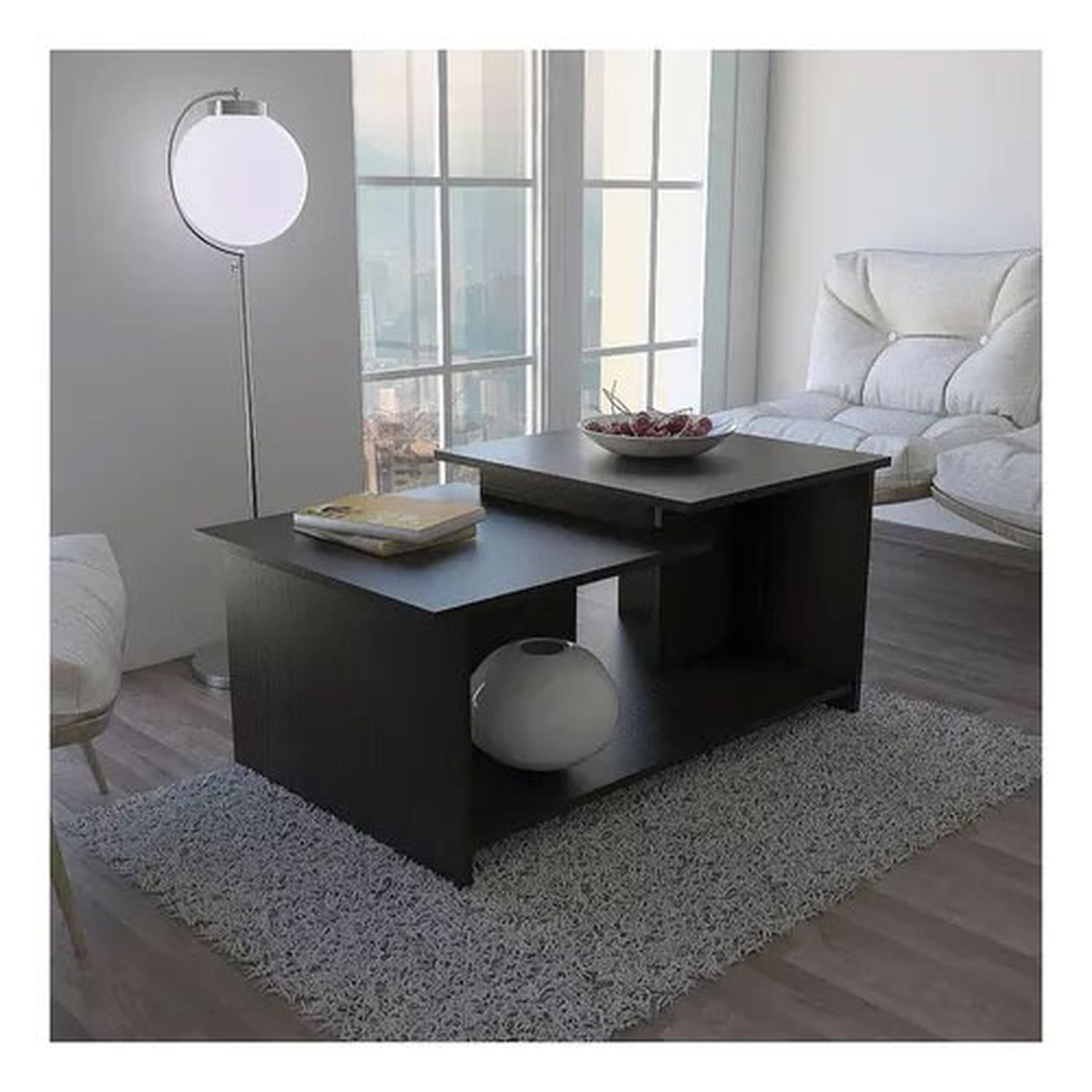Mesa de Centro Wema Wengue y Negro, con variedad de entrepaños