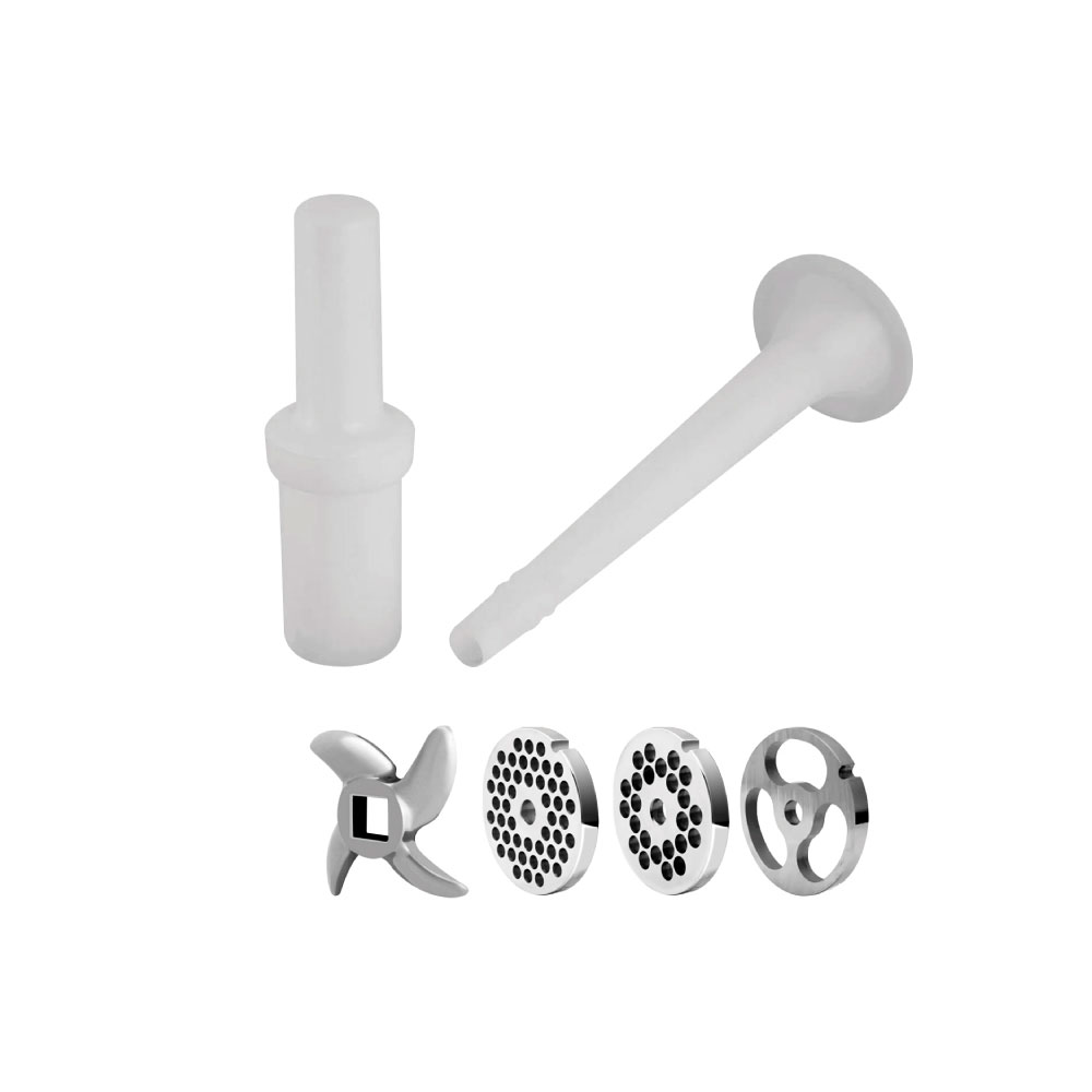 - Incluye 3 cedazos de acero inoxidable: 6 mm, 8 mm y 1 para cortar carne