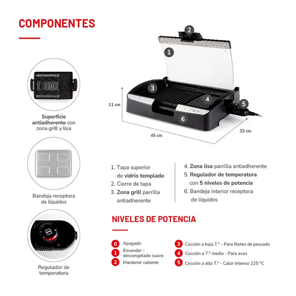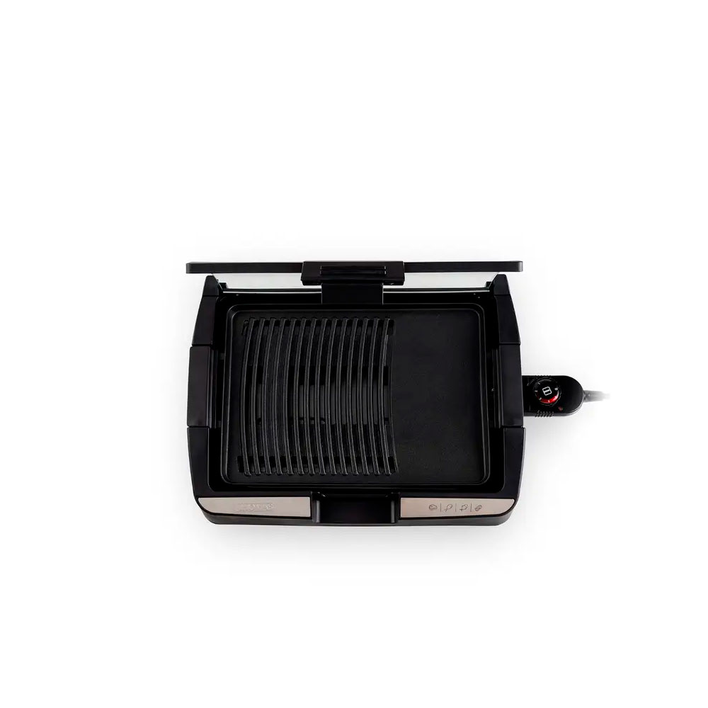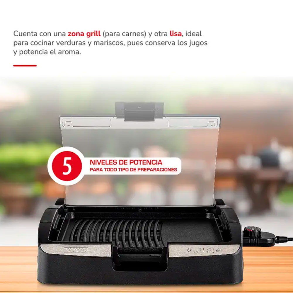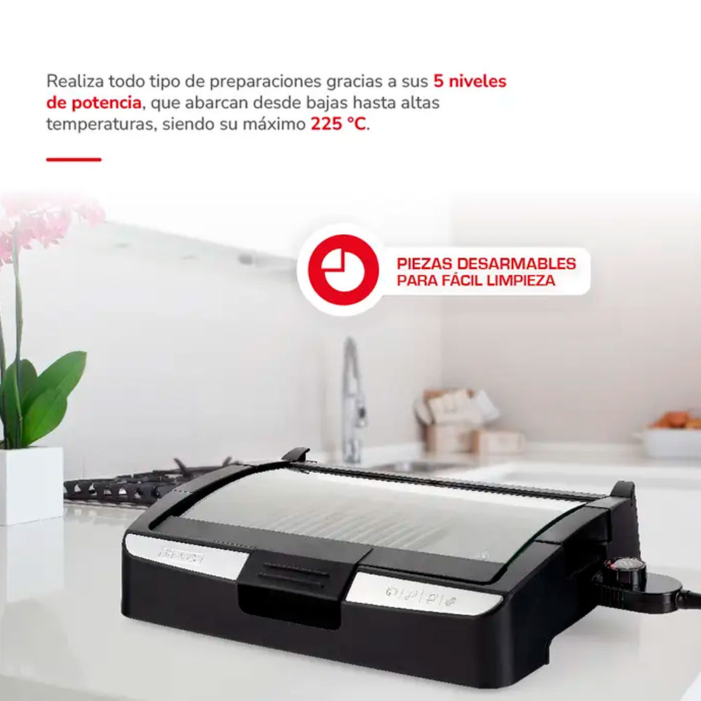 - Dos superficies de cocción Parrilla y plancha asadora