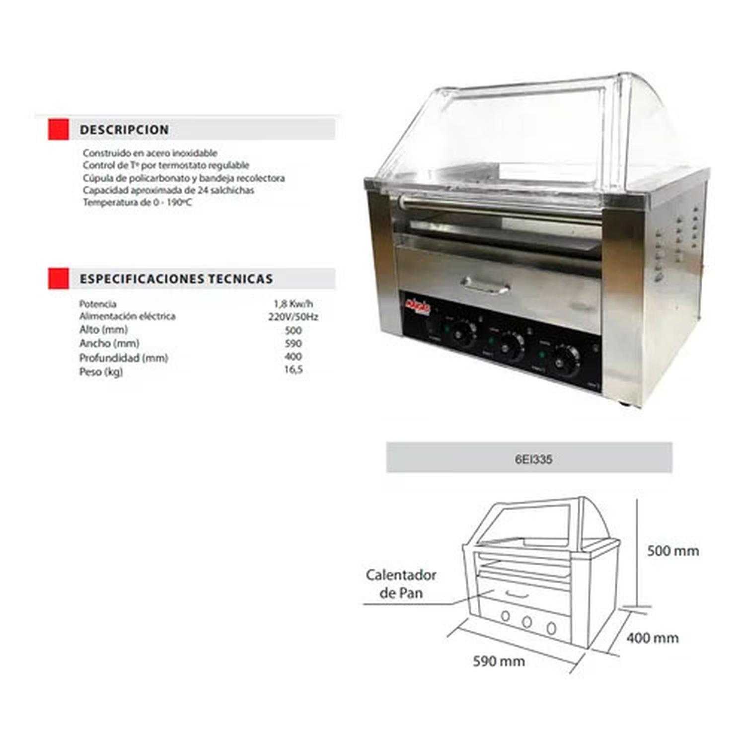 PARRILLA Hot dog 9 roller más calentador de pan.