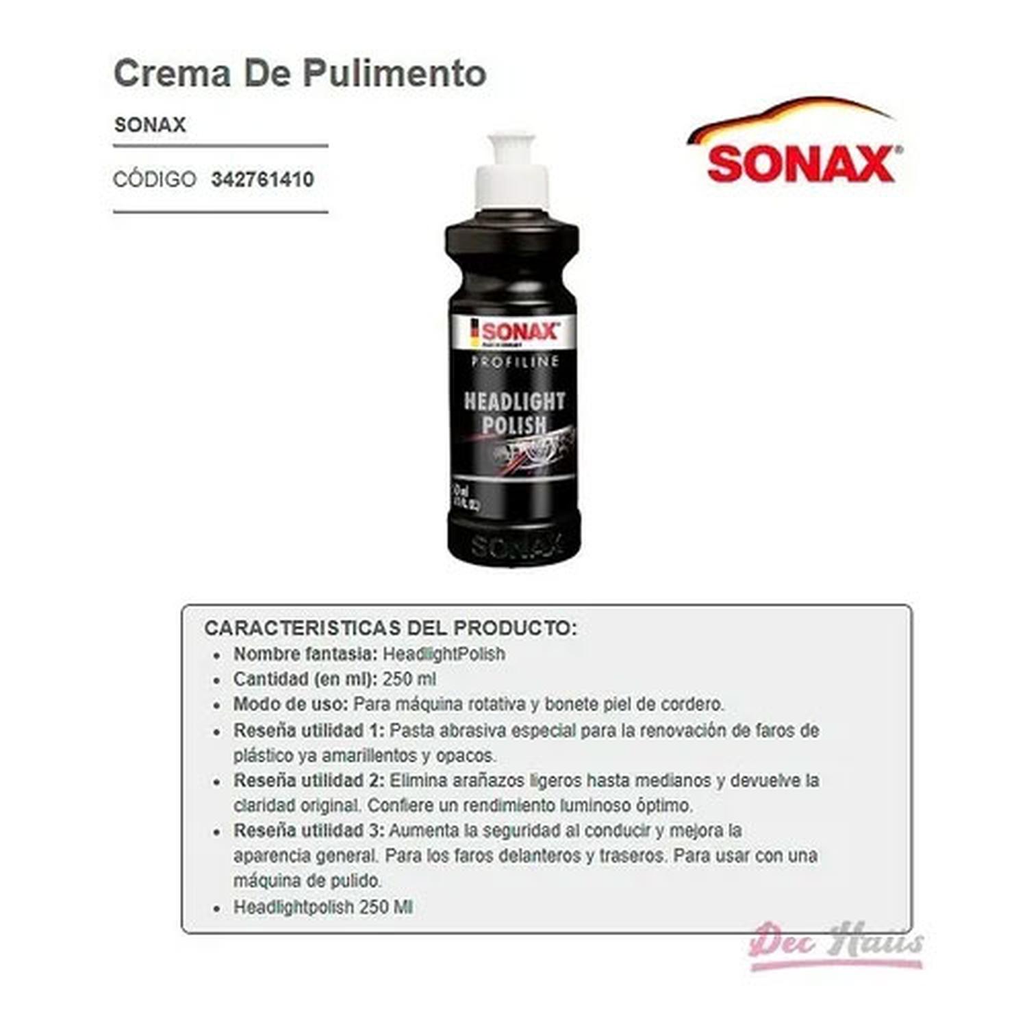 Pasta Pulidora De Faros Plásticos Profesional Sonax 250ml