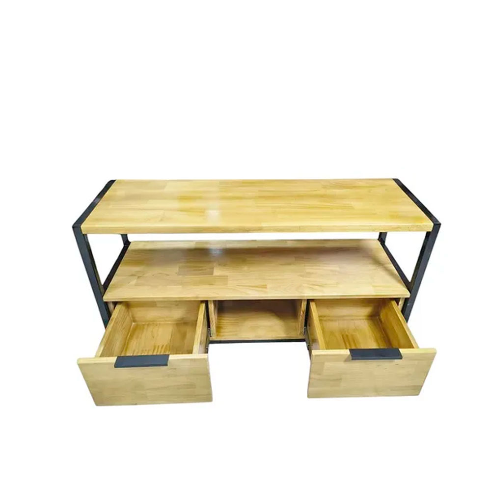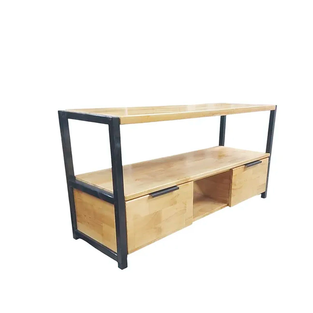 Rack Tv Madera Fierro 120x40x61 Cms Con Cajones Cafe Claro