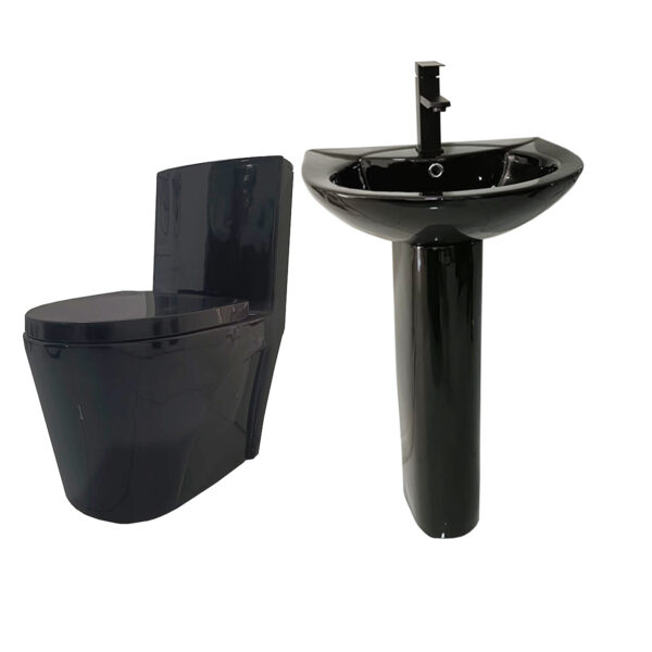 Sala Baño Negro 3 piezas Wc 30cm Lavamanos Pedestal Dechaus