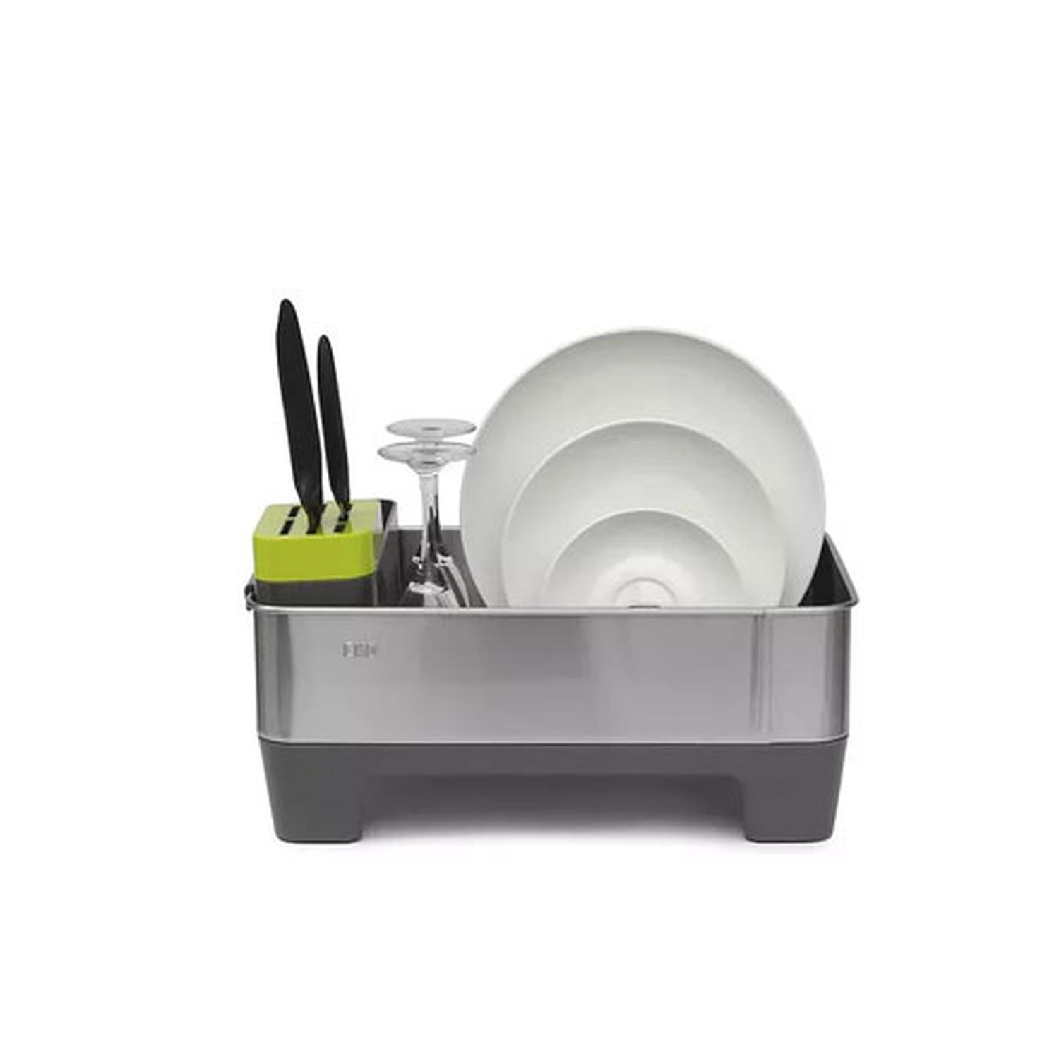 Nuestro Secaplatos Small es ideal para espacios reducidos. Cuenta con un compartimiento para que puedas poner tu loza y logres el secado perfecto de esta ya que tiene un canal inferior de flujo. Al ser de acero inoxidable anti-huellas y contar con soporte de vasos se convierte en el complemento ideal para tu lavaplatos.