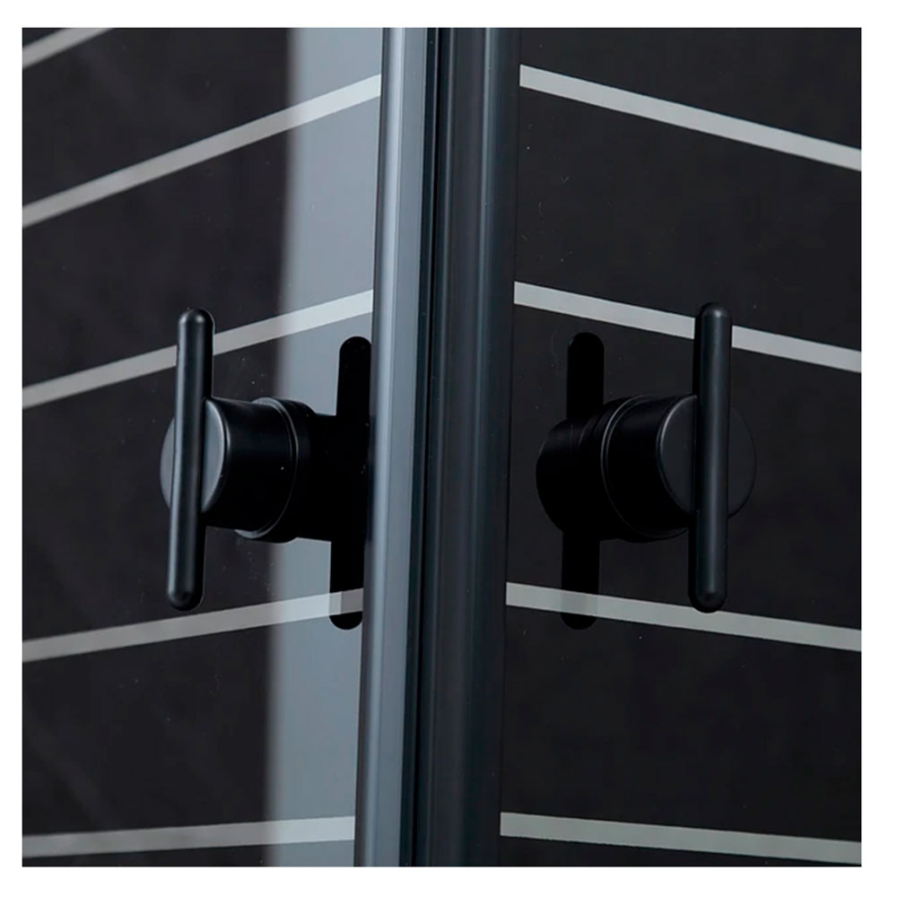 Shower door ( puertas correderas). Vidrio templado con franjas Negra, perfiles negros y receptaculo negro. Complemento de decoración y comodidad para su baño. Material resistente.