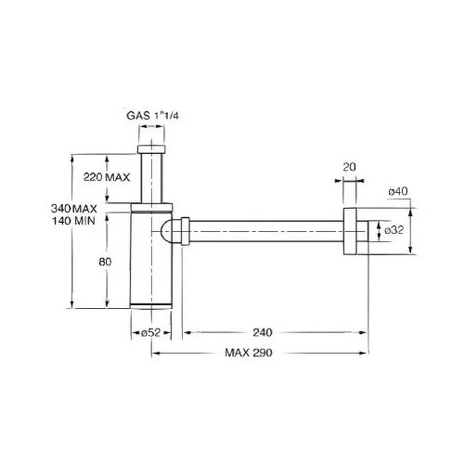 SIFON KING MINIM PLAST CROM 11/4 32MMX250MM VANITORIO