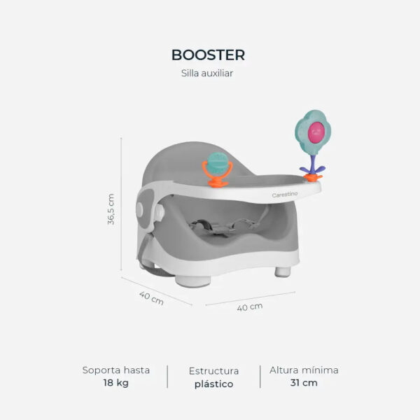La silla BOOSTER redefine la comodidad y seguridad en la hora de la comida. Diseñada para adaptarse a cualquier tipo de asiento con respaldo firme, sus correas de sujeción de alta resistencia aseguran un ajuste perfecto y confiable.