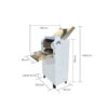Modelo: YM-500 Voltaje: 220V Frecuencia: 50Hz Potencia: 3.21 HP (2.4 kW) Intensidad de corriente: Monofásica – 16 A Índice de protección: IPX1 Tipo de enchufe: Italiano – 2P + 1T Largo del cable: 170 cm Rodillos: Ø12 x 50 cm Velocidad rotativa: 129 RPM Espesor ajustable: 0 a 2,2 cm Espesor bandejas: 0,2 cm Control de espesor: Manivela manual Material de rodillos y bandejas: Acero inoxidable Material del cuerpo: Acero con pintura electrostática Dimensión armado: (Ancho x profundidad x alto) 73,5 x 108 x 149 cm Dimensión embalaje sobadora en madera: (Ancho x profundidad x alto) 83 x 51 x 130 cm Peso neto: 173 kg Peso bruto: 190 kg Dimensión embalaje caja cartón bandejas entrada y salida: (Ancho x profundidad x alto) 62 x 18 x 58 cm Peso neto: 12 kg Peso bruto: 13 kg Botones de emergencia: 2