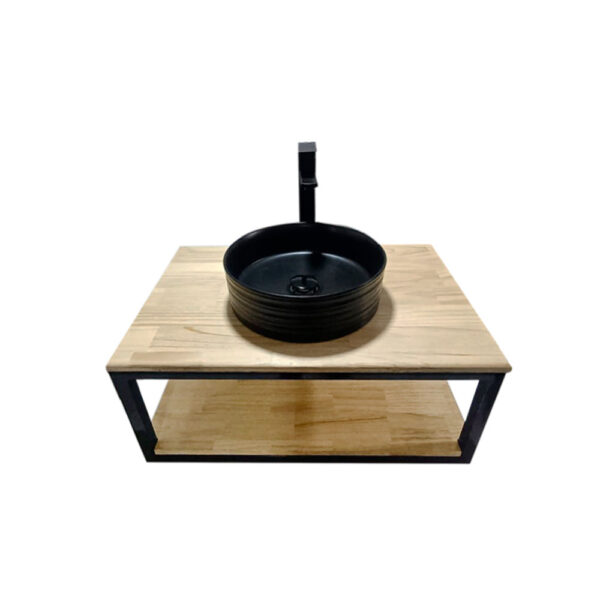 Vanitorio colgante Rustico Fierro-Pino -Loza 76x51x45 + Griferia