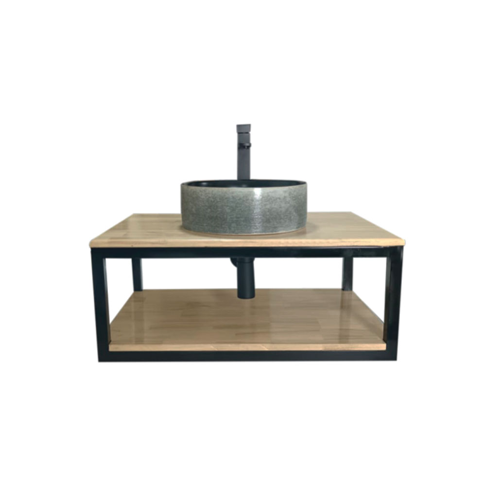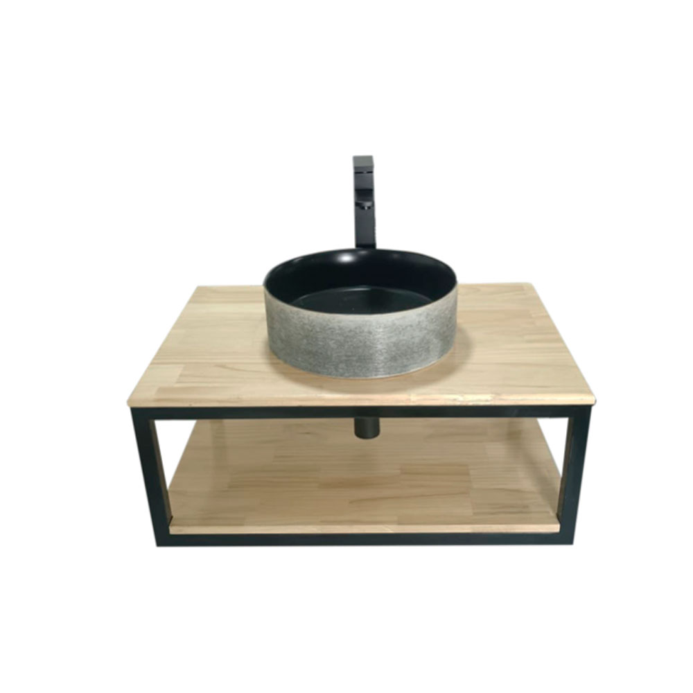 Vanitorio colgante Rustico Fierro-Pino -Loza 8024 76x51x44 + Griferia